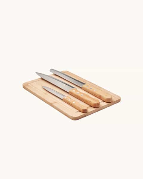 The Bamboo Cutting Board Set is a must-have for any kitchen. Crafted from durable bamboo, this set includes three sharpened knives: a chef's knife, a bread knife, and a boning knife. With their bamboo handles, these knives not only provide a natural look but also offer a comfortable grip. Whether you're slicing vegetables, meat, fish, or bread, this complete set will help you create the most delicious homemade meals. Please note that as bamboo is a natural product, slight variations in color and size may occur, which can add to the unique charm of each item.