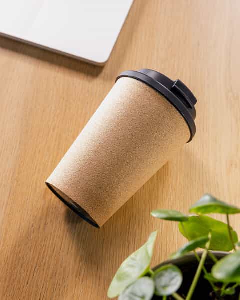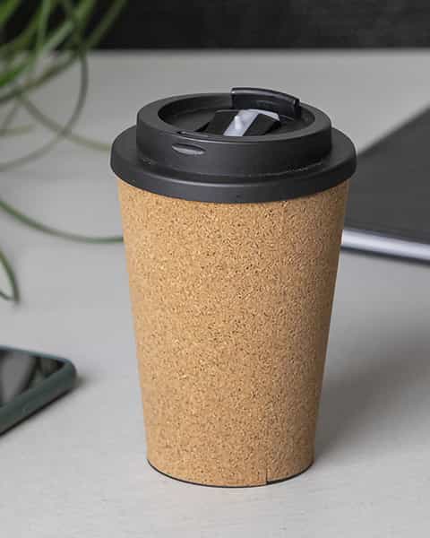 The Cork Corn 350ml Coffee Mug, a natural and reusable solution for your daily dose of caffeine. Crafted with care, the outside of this mug is made from 100% FSC-certified cork, a biodegradable and renewable material. Inside, you'll find a compostable polylactide (PLA) lining, ensuring a sustainable sip every time. With a generous capacity of 350ml, this mug comes packaged in an eco-friendly kraft box.