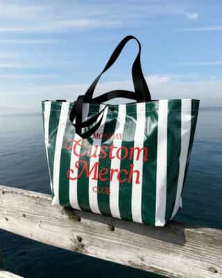 A durable waterproof woven bag with a glossy finish. Its large surface makes it ideal for your unique design.