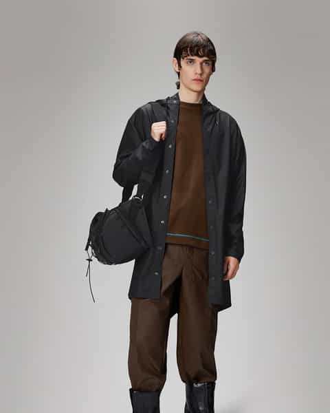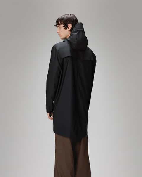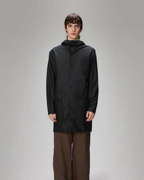 The RAINS Long Jacket is a modern, unisex raincoat that extends the classic design with added length. This functional piece boasts a minimalist silhouette, featuring double-welded slanted flap pockets, adjustable cuffs, and a fishtail hem. The design is completed with subtle snaps, underarm eyelets, and a back yoke with concealed vents. The jacket is crafted from a signature PU fabric, offering a lightweight, waterproof and windproof finish that feels soft to the touch and drapes elegantly.
