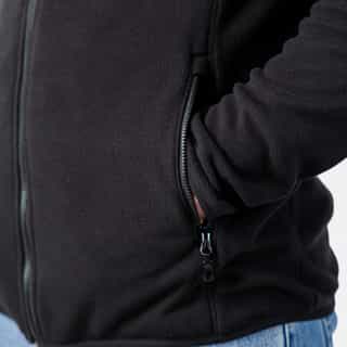 This Fleece Jacket is a versatile piece of attire, designed with a front zipper for easy wear. It features two front pockets with zippers, providing secure storage for your essentials. The elasticated cuffs and hem ensure a snug fit, enhancing comfort and warmth.