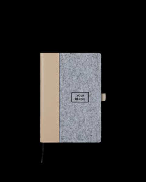 Mantén tus pensamientos en orden con la libreta de fieltro, una adición genial a tu rutina diaria. Su suave cubierta la hace perfecta para toques personales o para exhibir tu marca. Nuestro equipo está listo para ayudarte a diseñar algo único.