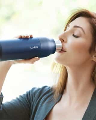Ti presentiamo l'innovativa Thermos LARQ PureVis con un sistema di purificazione dell'acqua integrato. Grazie alla tecnologia all'avanguardia PureVis, questa bottiglia elimina efficacemente fino al 99% dei bio-contaminanti nocivi come l'E. coli sia dall'acqua che dalla bottiglia stessa.