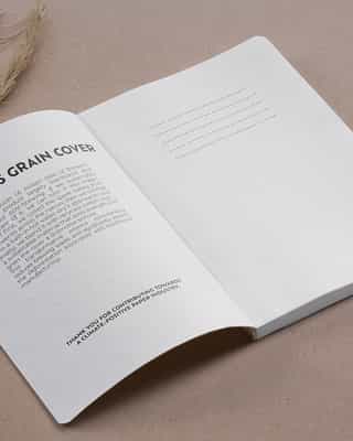 Een eco-notitieboekje gemaakt van brouwersgraan, met een unieke textuur. Ons team helpt je graag bij het realiseren van jouw ontwerp.