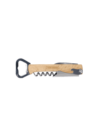 This 4-in-1 Bottle Opener is your go-to tool. It includes a corkscrew, two bottle openers, a can opener, and a knife. Our team is ready to help you design something unique.