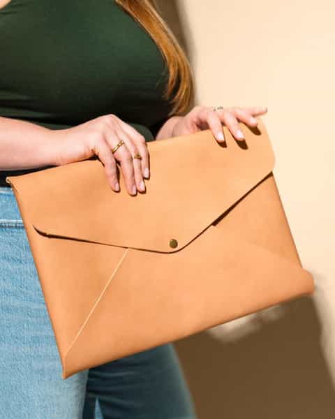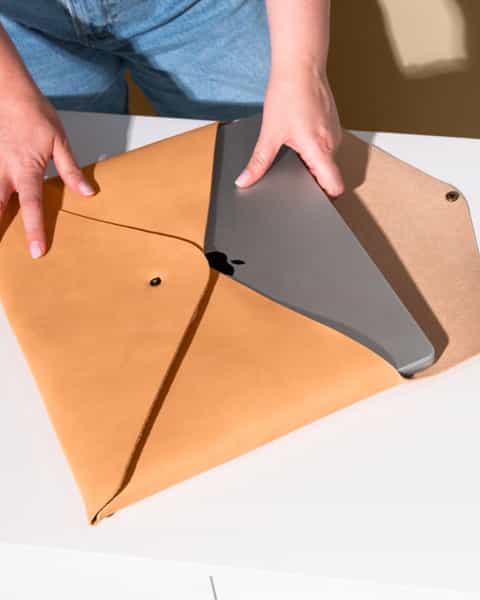 Sleek leather envelope for laptop storage and style. Premium and customizable.