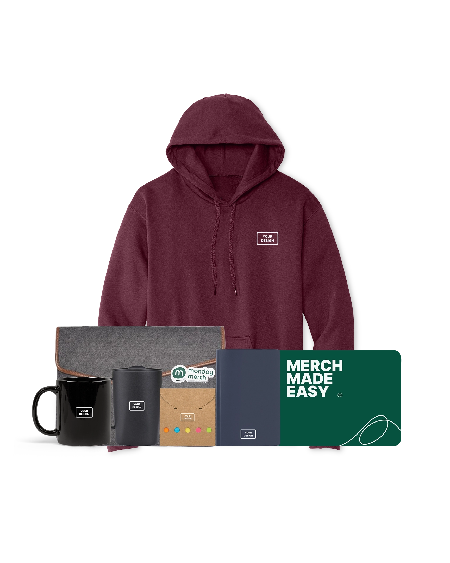 Cool swag pack for WFH. Perfect for custom branding. Our team is ready to help design your unique look.