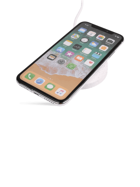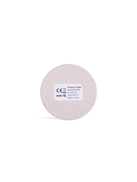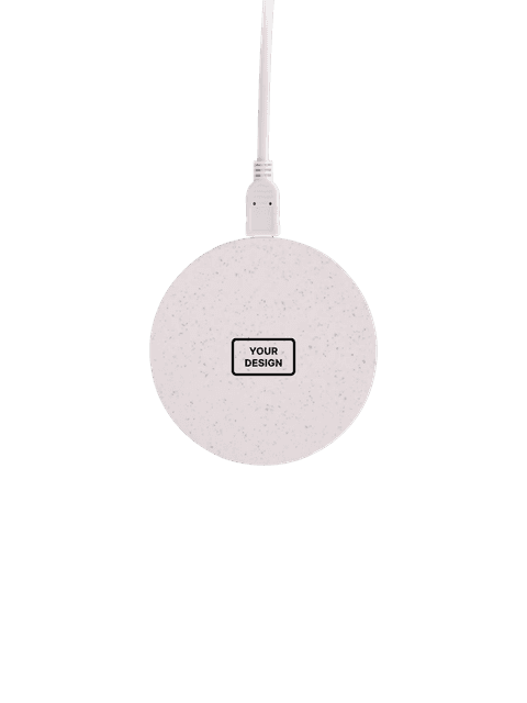 Eco-friendly wireless charger made from wheat straw. Perfect for sustainable swag.